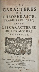 Mientras traducía Los caracteres de Teofrasto, teniendo en cuenta la versión latina que Casaubon había publicado en 1592, iba imbuyéndose del agudo espíritu del que fuera oyente de Platón y luego discípulo de Aristóteles, al cual sustituyó en la dirección del Liceo cuando el maestro se retiró a Calcis. Teofrasto, prolífico, incisivo también, escribió sobre los más varios asuntos: en su interés se hallaban no sólo las cuestiones como la naturaleza de la miel, los sabores, el cabello, el mareo y el vértigo, el sudor, las plantas, el viento, los metales, las piedras, la astronomía, la música; su amplia relación de libros dejó asimismo buenos legajos de páginas sobre la melancolía, la insensatez, las pasiones, el castigo, la amistad, la ambición, el ridículo, el elogio, la calumnia, la virtud, la instrucción del soberano, la injusticia, temas todos ellos que reclamaron en mayor o menor medida la atención de La Bruyère. Precisamente, la injusticia aparece con reiteración en Los caracteres: su sentido de la equidad, el desprecio hacia el opresor, la crítica ante las infamantes condiciones de los campesinos, la defensa del desvalido o el llamamiento a los pueblos para reclamar sus derechos ha hecho que algunos estudiosos consideren al autor como avanzadilla de los valores ilustrados. Ilusión óptica. Nuevo deseo de pensar que el mundo vino al mundo en el siglo XVIII. Más cerca del ideario que pueda encontrarse en las páginas de Étienne de la Boëtie, aseveró que «En dejarse gobernar hay tanta debilidad como pereza» [157].