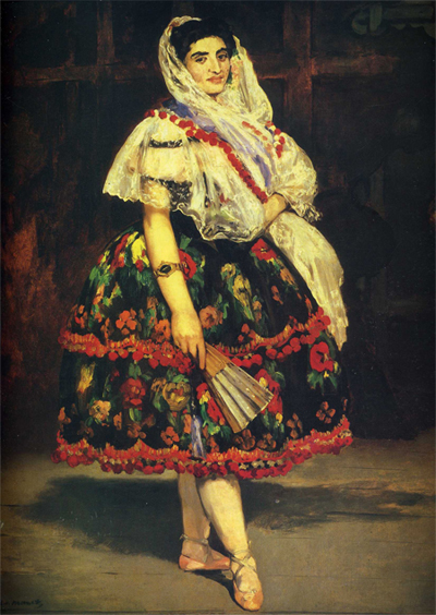 Pintores y aguafuertistas (1992: 334) por el método que este último tenía para reflejar la realidad moderna a través de la imaginación, Manet terminaba dos cuadros. En uno de ellos,