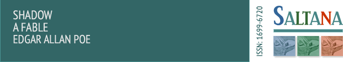 3 Over some flasks of the red Chian wine, within the walls of a noble hall, in a dim city called Ptolemais, we sat, at night, a company of seven. And to our chamber there was no entrance save by a lofty door of brass: and the door was fashioned by the artizan Corinnos, and, being of rare workmanship, was fastened from within. Black draperies, likewise, in the gloomy room, shut out from our view the moon, the lurid stars, and the peopleless streets — but the boding and the memory of Evil, they would not be so excluded. There were things around us and about of which I can render no distinct account — things material and spiritual. Heaviness in the atmosphere — a sense of suffocation — anxiety — and above all, that terrible state of existence which the nervous experience when the senses are keenly living and awake, and meanwhile the powers of thought lie dormant. A dead weight hung upon us. It hung upon our limbs — upon the household furniture — upon the goblets from which we drank; and all things were depressed, and borne down thereby — all things save only the flames of the seven iron lamps which illumined our revel. Uprearing themselves in tall slender lines of light, they thus remained burning all pallid and motionless; and in the mirror which their lustre formed upon the round table of ebony at which we sat, each of us there assembled beheld the pallor of his own countenance, and the unquiet glare in the downcast eyes of his companions. Yet we laughed and were merry in our proper way — which was hysterical; and sang the songs of Anacreon — which are madness; and drank deeply — although the purple wine reminded us of blood. For there was yet another tenant of our chamber in the person of young Zoilus. Dead, and at full length he lay, enshrouded — the genius and the demon of the scene. Alas! he bore no portion in our mirth, save that his countenance, distorted with the plague, and his eyes in which Death had but half extinguished the fire of the pestilence, seemed to take such interest in our merriment as the dead may haply take in the merriment of those who are to die. But although I, Oinos, felt that the eyes of the departed were upon me, still I forced myself not to perceive the bitterness of their expression, and, gazing down steadily into the depths of the ebony mirror, sang with a loud and sonorous voice the songs of the son of Teios. But gradually my songs they ceased, and their echoes, rolling afar off among the sable draperies of the chamber, became weak, and indistinguishable, and so fainted away. And lo! from among those sable draperies where the sounds of the song departed, there came forth a dark and undefined shadow —a shadow such as the moon, when low in heaven, might fashion from the figure of a man: but it was the shadow neither of man, nor of God, nor of any familiar thing. And quivering awhile among the draperies of the room, it at length rested in full view upon the surface of the door of brass. But the shadow was vague, and formless, and indefinitive, and was the shadow neither of man nor God —neither God of Greece, nor God of Chaldæa, nor any Egyptian God. And the shadow rested upon the brazen doorway, and under the arch of the entablature of the door, and moved not, nor spoke any word, but there became stationary and remained. And the door whereupon the shadow rested was, if I remember aright, over against the feet of the young Zoilus enshrouded. But we, the seven there assembled, having seen the shadow as it came out from among the draperies, dared not steadily behold it, but cast down our eyes, and gazed continually into the depths of the mirror of ebony. And at length I, Oinos, speaking some low words, demanded of the shadow its dwelling and its appellation. And the shadow answered, “I am SHADOW, and my dwelling is near to the Catacombs of Ptolemais, and hard by those dim plains of Helusion which border upon the foul Charonian canal.” And then did we, the seven, start from our seats in horror, and stand trembling, and shuddering, and aghast: for the tones in the voice of the shadow were not the tones of any one being, but of a multitude of beings, and, varying in their cadences from syllable to syllable, fell duskily upon our ears in the well remembered and familiar accents of many thousand departed friends. |