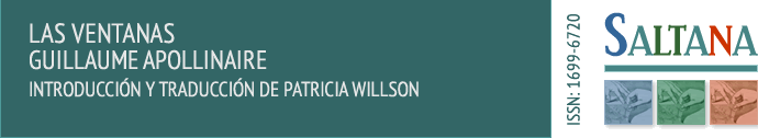 Sin embargo, las exploraciones vanguardistas de Apollinaire sobre la relación entre palabra e imagen no se limitaron al poema figurativo e incluyeron otras estrategias que trasponían las nuevas tendencias pictóricas. Influido por su estrecha relación con Robert Delaunay, que se adentraba desde 1911 por la senda de la abstracción a través de su teoría del contraste simultáneo de colores, Apollinaire escribió a fines de 1912 el poema «Las ventanas», donde quiso plasmar ideas parecidas en el plano verbal mediante el empleo de la libre asociación y la desmembración del discurso. Su redacción fue inspirada por las frecuentes visitas de Apollinaire al taller de Delaunay, quien trabajaba intensamente por aquel entonces en la serie del mismo nombre, y el poema se compone de elementos que evocan el mundo del pintor (los colores y los objetos de sus pinturas o que se encontraban en el taller), así como fragmentos de conversación, imágenes familiares o inventadas del poeta, y juegos verbales que buscan la sorpresa. A diferencia de la espacialización del texto de sus caligramas posteriores (el primero, «Carta-océano», apareció en 1914), el efecto de simultaneidad pretendido por Apollinaire en «Las ventanas» se basa sólo en el